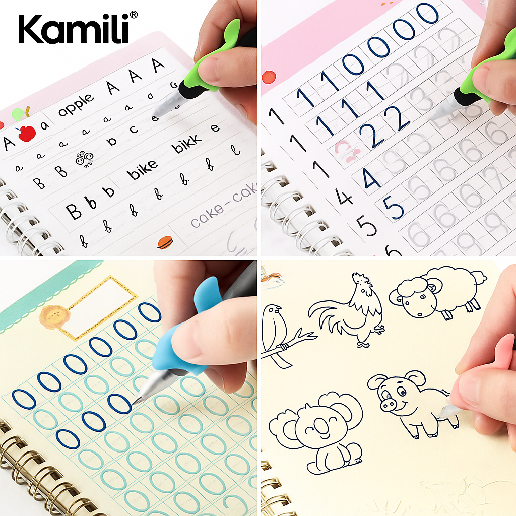 Magic Practice Copybook Set for Kids – 4 Books + Pen + Refills